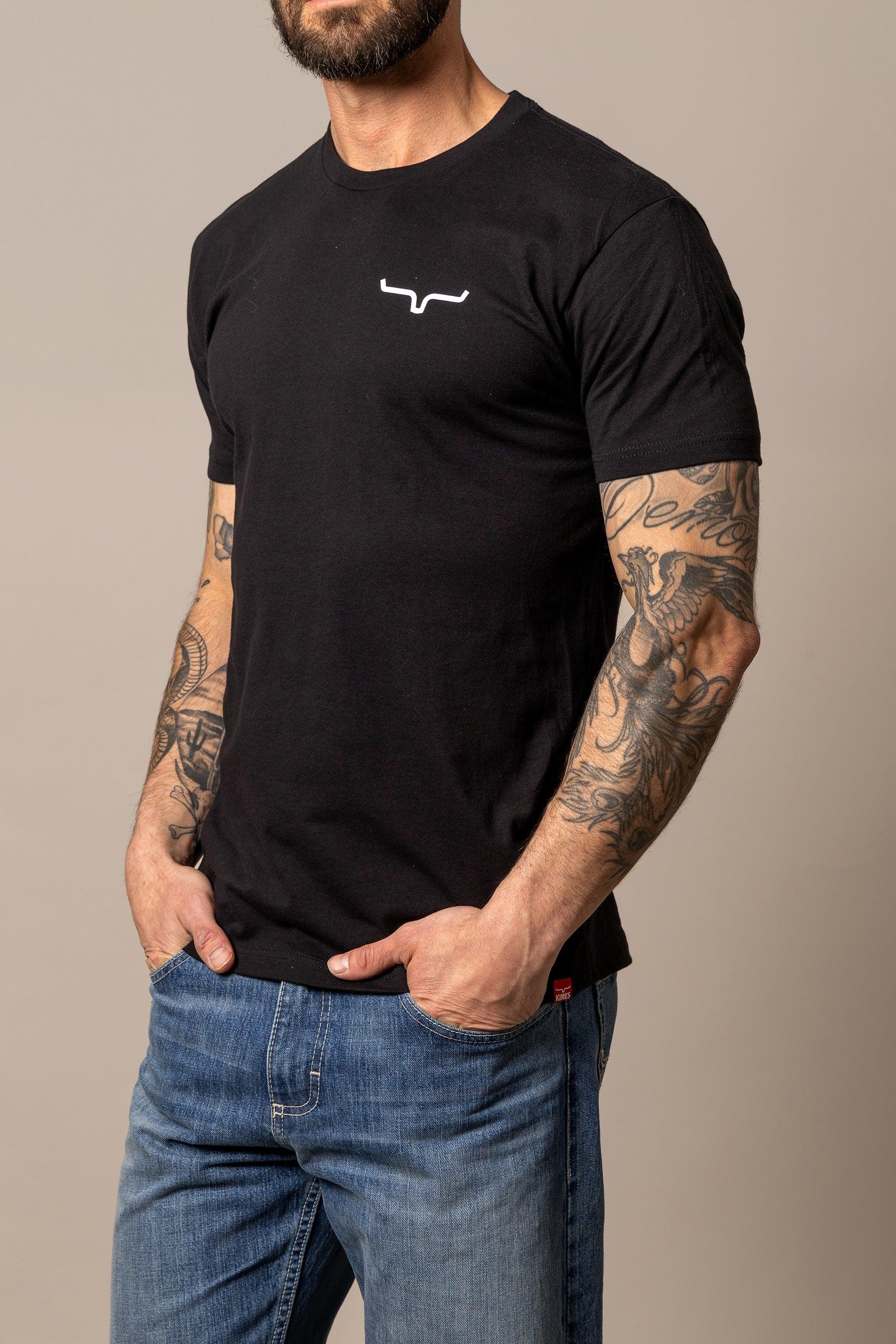 The back of this tee features a circular camo emblem with our logo and our classic horns on the front left chest. Do you live your western through the great outdoors and hunting? This t-shirt is for you!