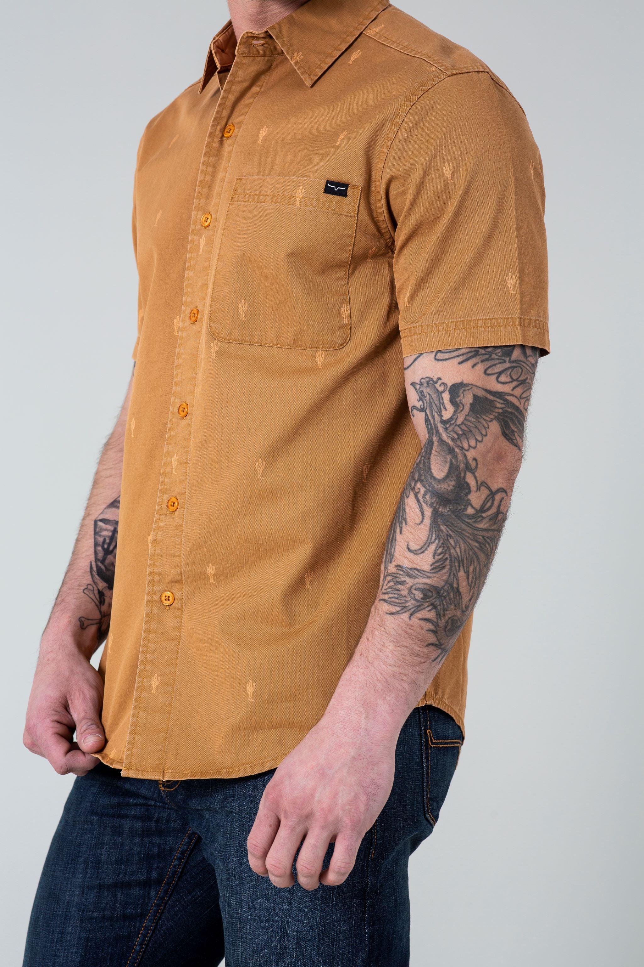 Inspired by the desert we call home. the Cisco shirt features a subtle all-over cactus pattern on 100% cotton twill. This classic men’s cut short-sleeve shirt will make you feel like you’re enjoying a summer evening on the beautiful Kimes Ranch.