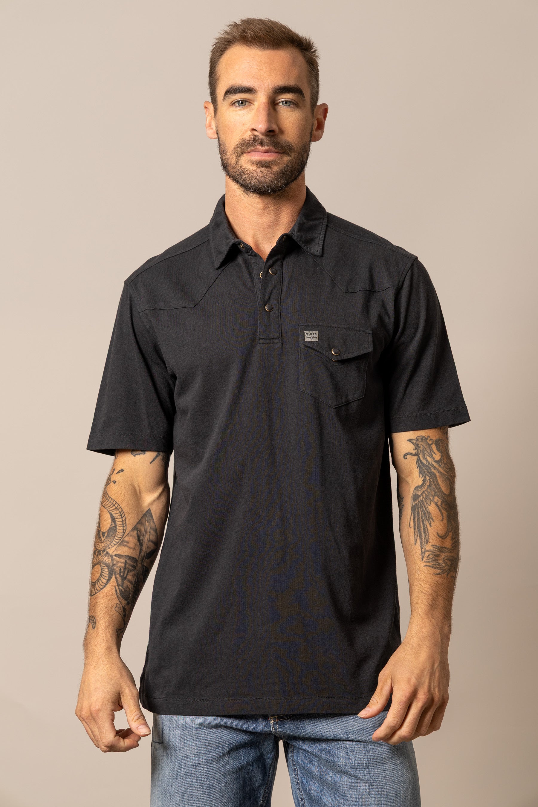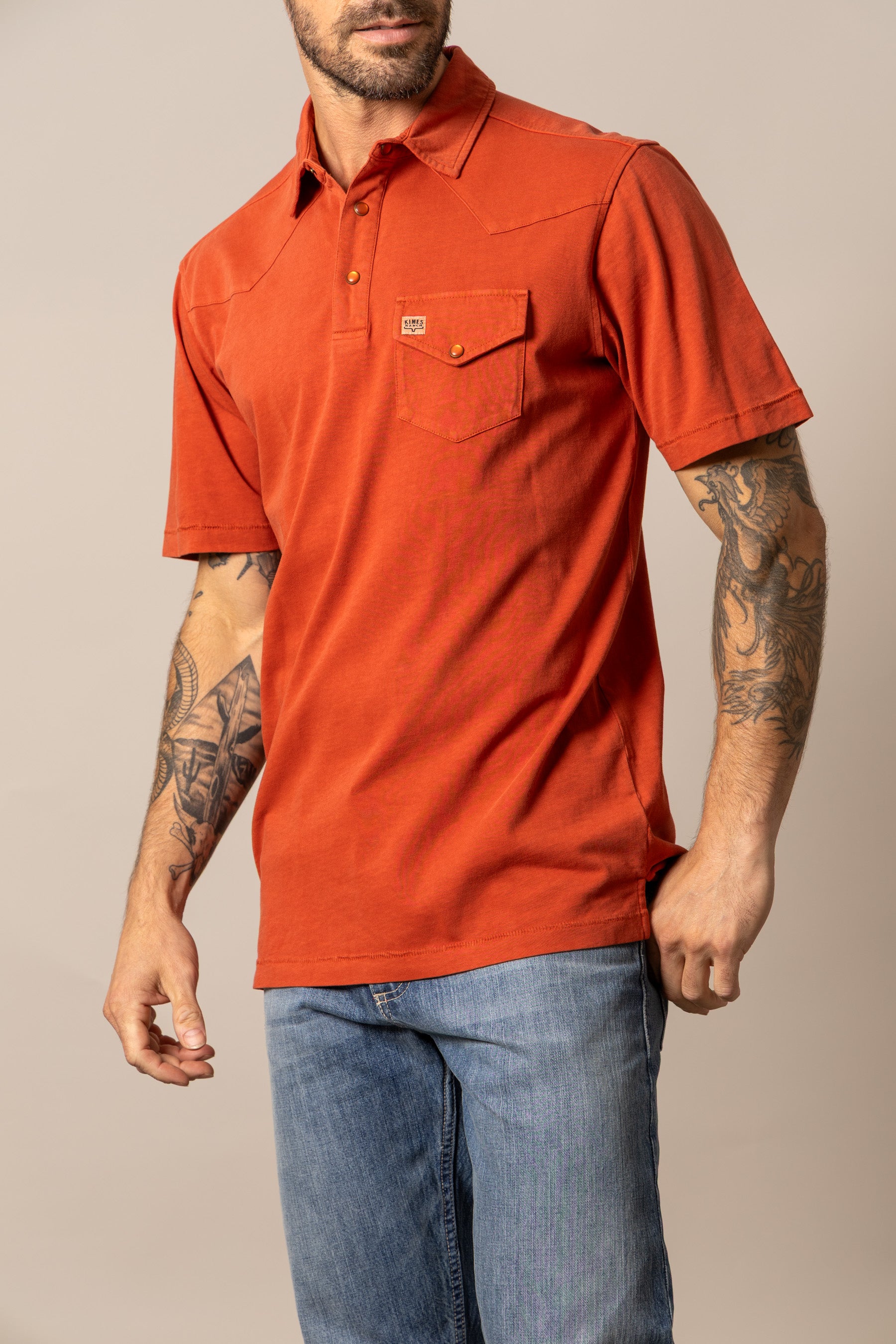 The Fluger Polo is a timeless piece that embodies the Kimes Ranch spirit. Featuring a classic pearl snap button closure and a distinctive western yoke. this polo combines traditional style with easy comfort. The angled snap closure chest pocket adds a unique touch. while the overall design exudes a sense of reliability. Whether you’re hitting the town orenjoying a day in the saddle. this polo captures the essence of laid-back western style.