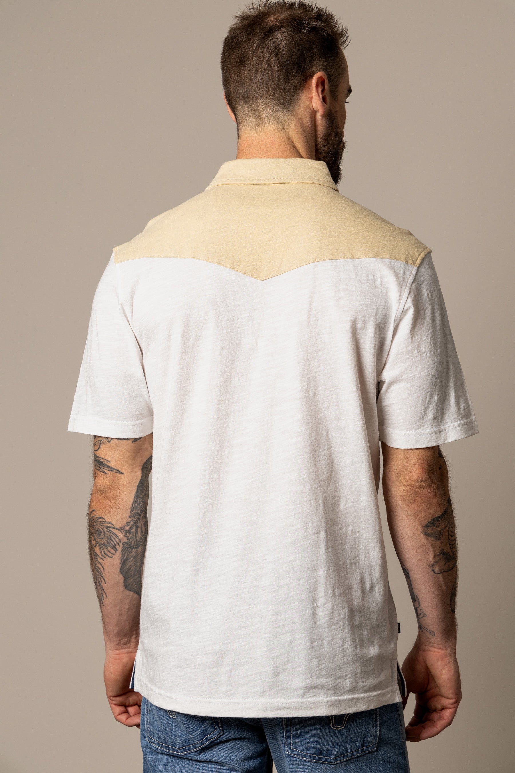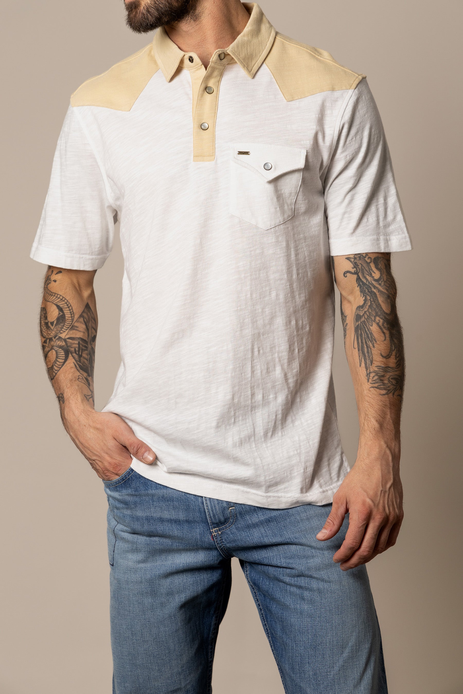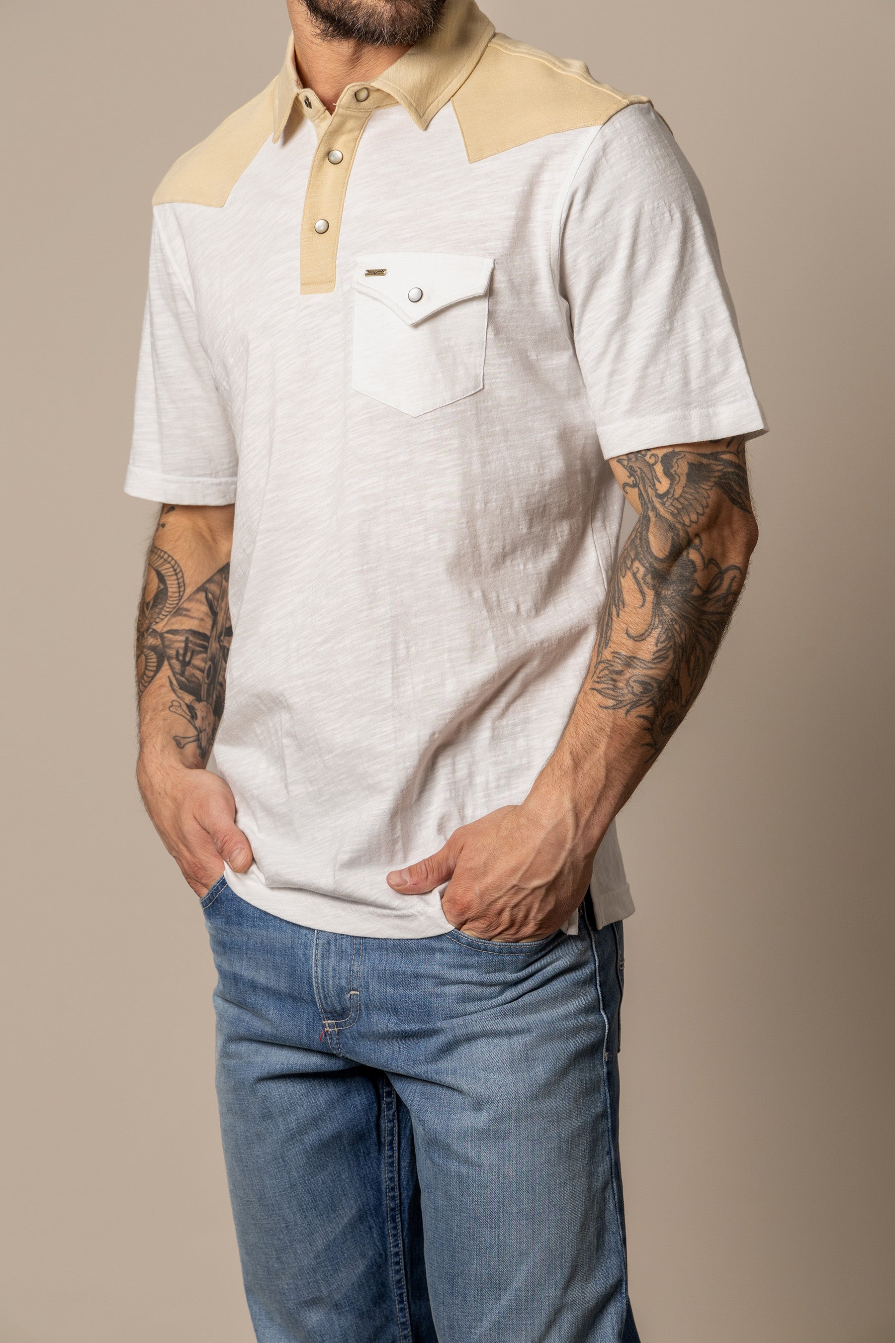 The G-2 Polo is the modern cowboy’s polo. A sophisticated staple piece is met with western details. giving a refined look. Including a contrasting western yoke and a single button up pocket at the front that showcases an embroidered longhorn logo. this polo stands out.