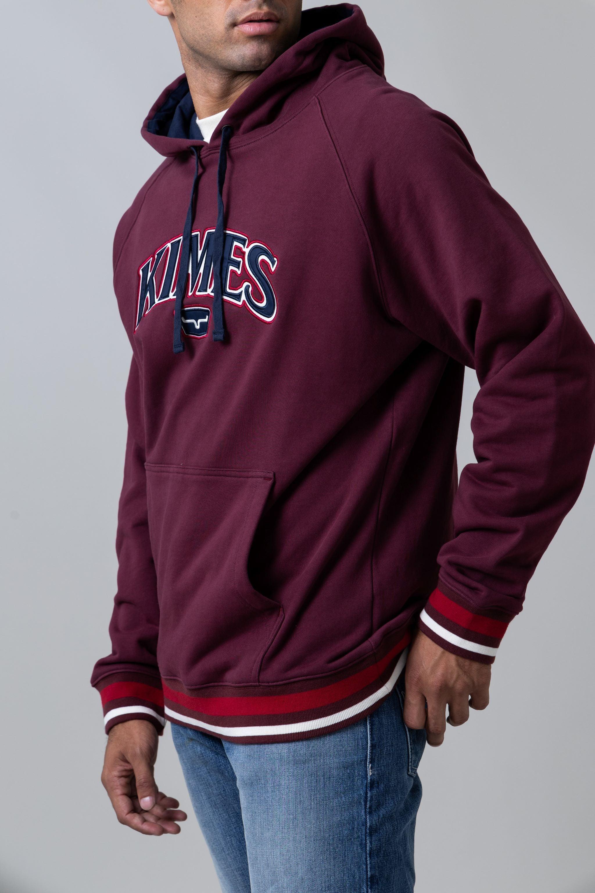 The Kubo Hood – a heavy weight French terry hoodie with a vibrant striped bottom and hand ribbing for that extra flair. This piece features Kimes on the chest. complemented by a horn logo underneath. adding a touch of Western charm to your casual look.