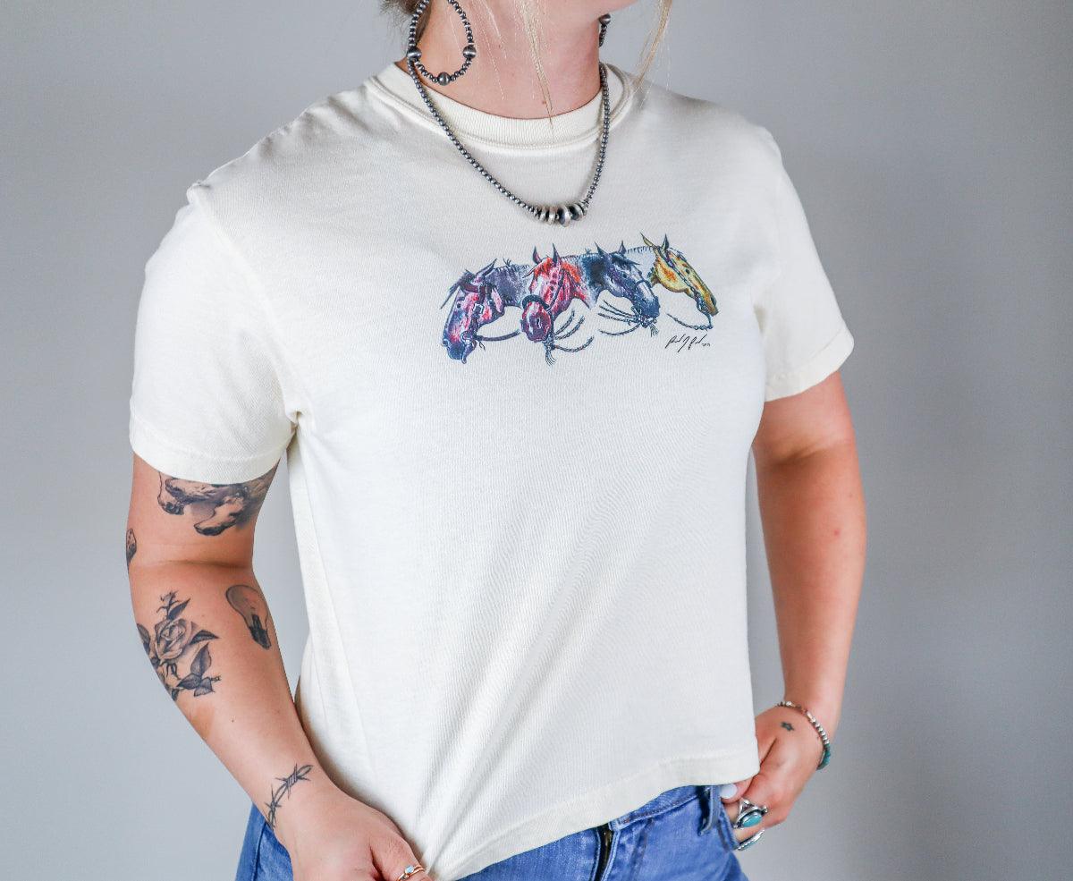 Limited Edition Randy Paul t-shirt! Randy Paul is not only a legendary horse trainer but also an incredible artist. When you buy this tee with his design. a percentage of sales will be donated to the National Reined Cow Horse Youth Association!