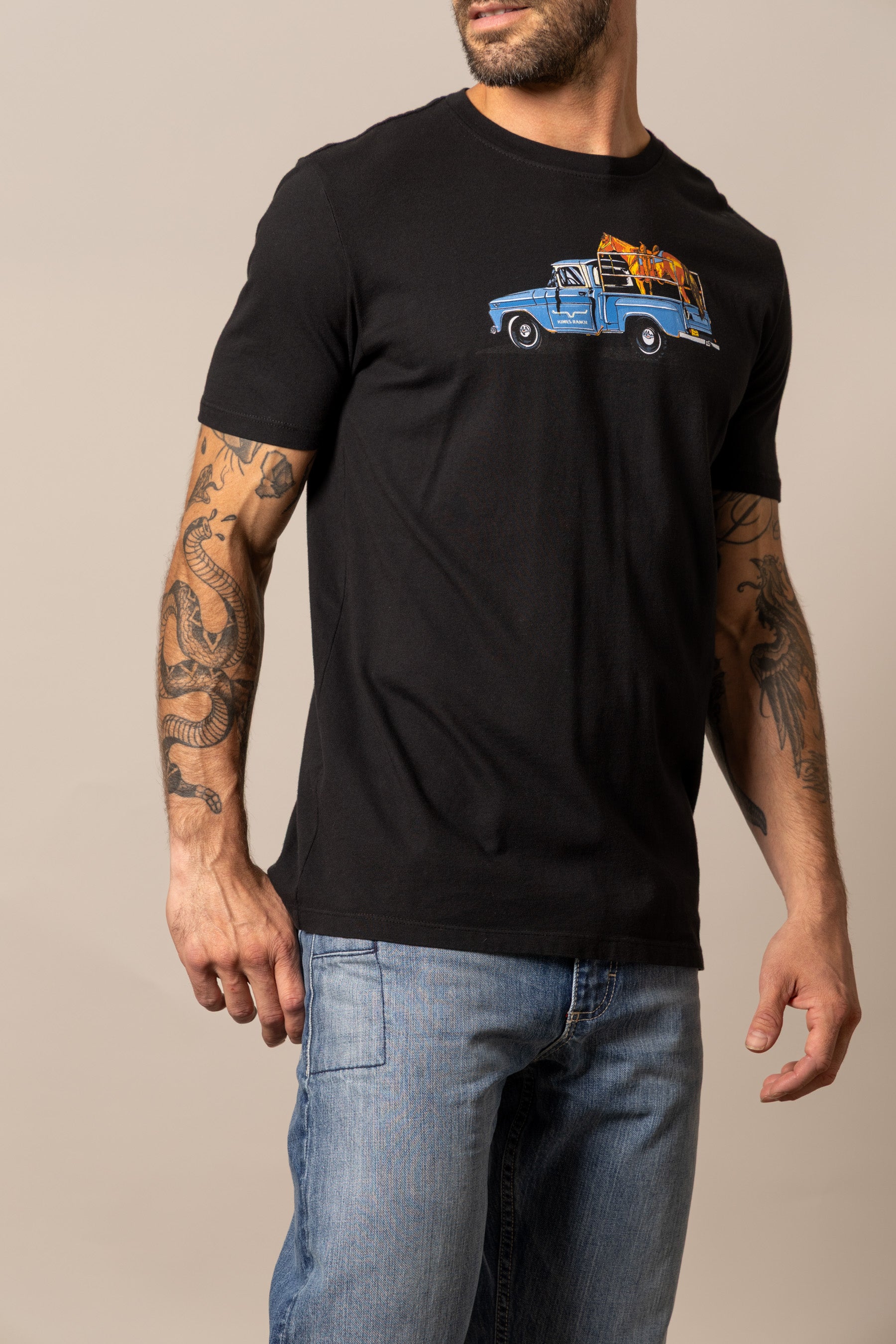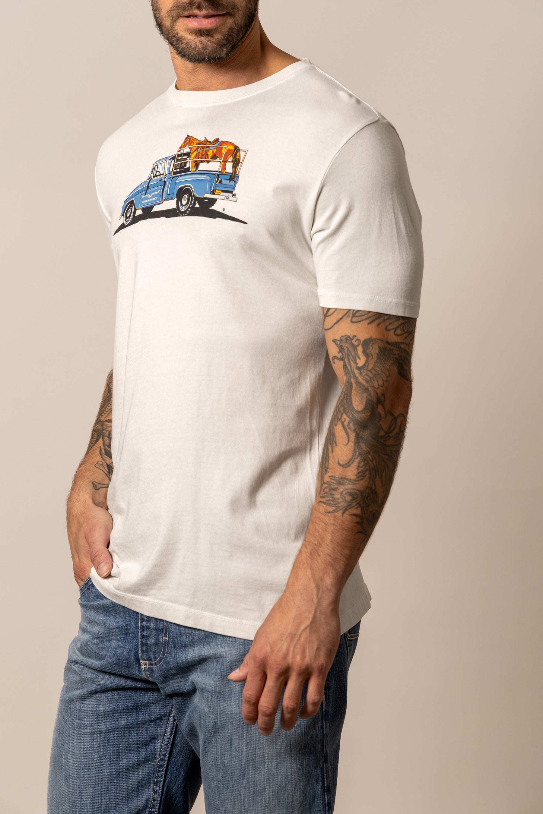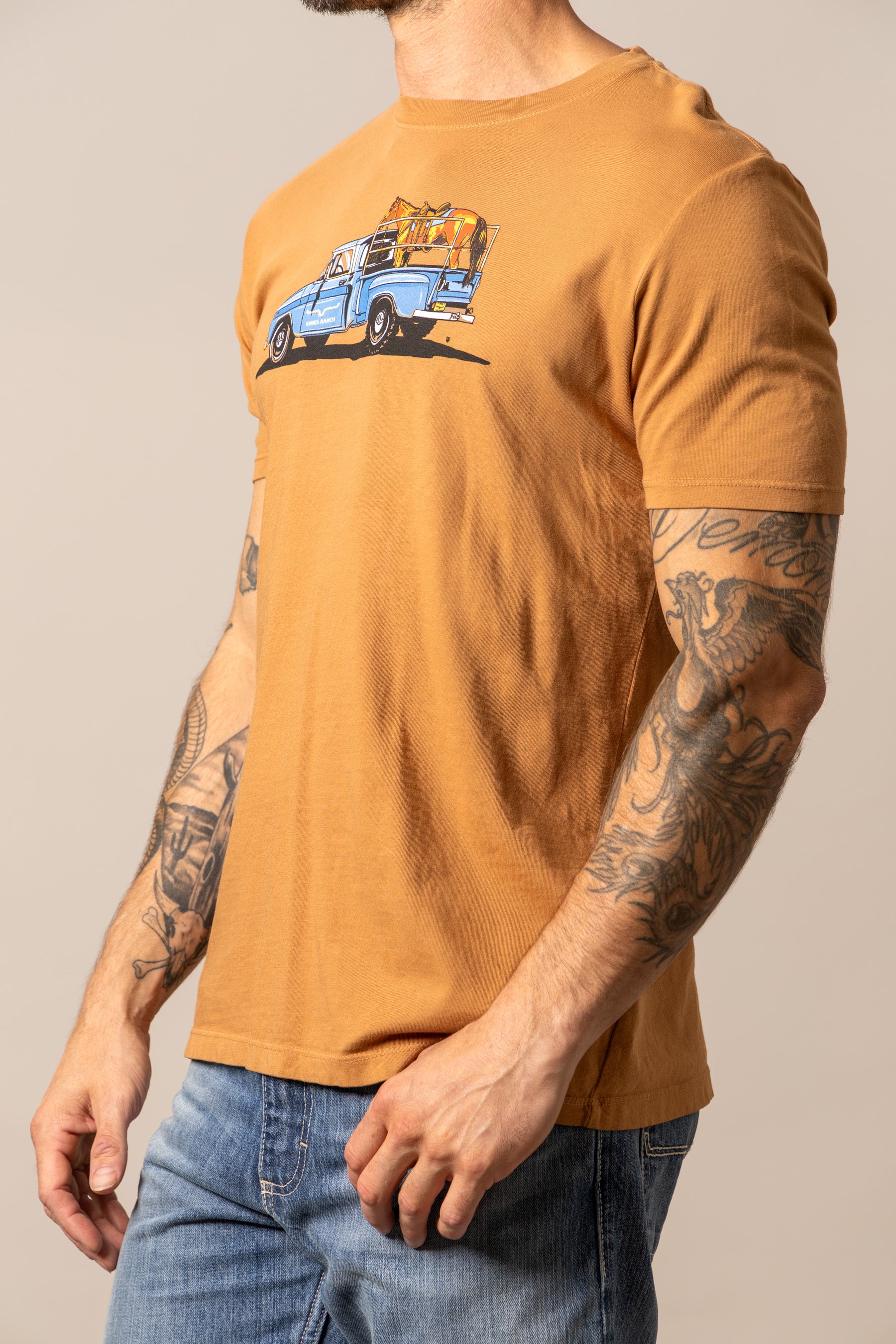 The Lucky B Truck Tee captures the charm. grit. and everyday beauty of ranch life. A Western scene worth wearing. With a vintage look and soft. broken-in feel. it’s made for early mornings. dusty roads. and anyone who knows there’s no place like home on four wheels.