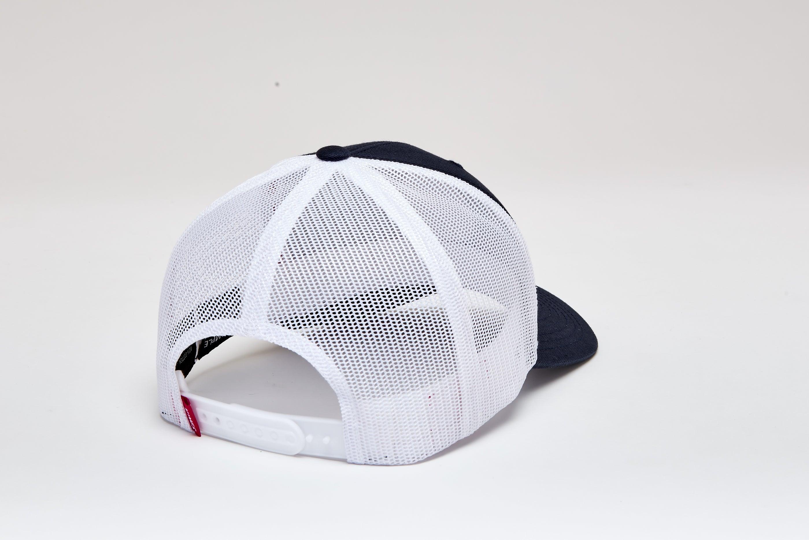 Details: X-Fit Trucker with curved brim and snap back. Twill ground embroidery patch at front.
