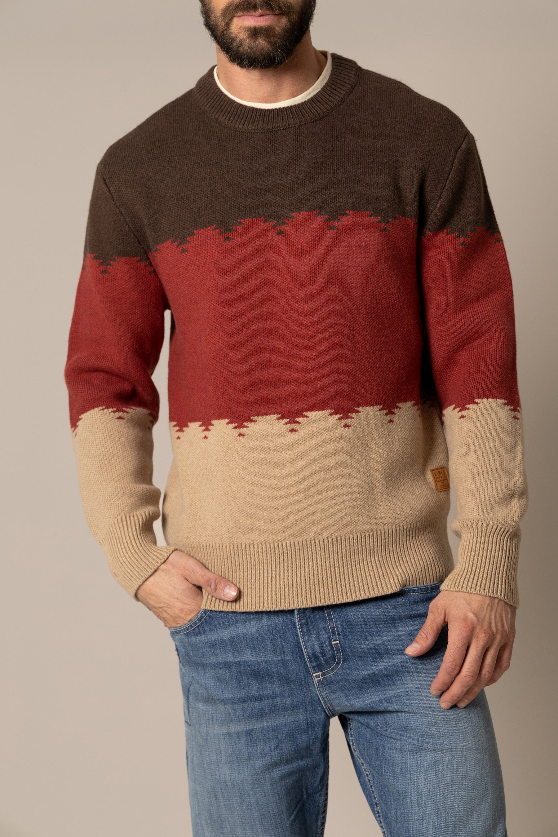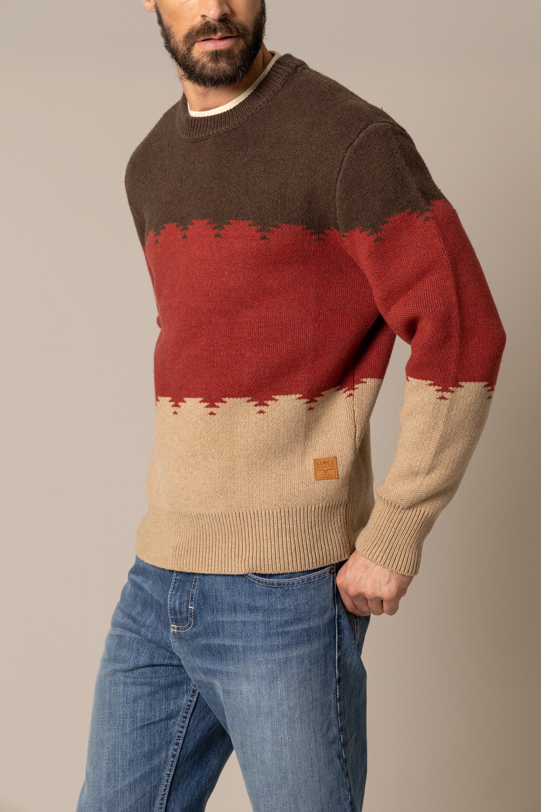 The Trey crew sweater is the epitome of fall style.Crafted from a premium wool blend. it offers warmth without bulk and a refined texture that wears well from ranch to city. A classic crew neckline and tailored fit create timeless versatility. while subtle Kimes Ranch detailing adds a modern edge. Durable. breathable. and effortlessly stylish—this sweater is designed for layering through crisp mornings. cool evenings. and every season in between.