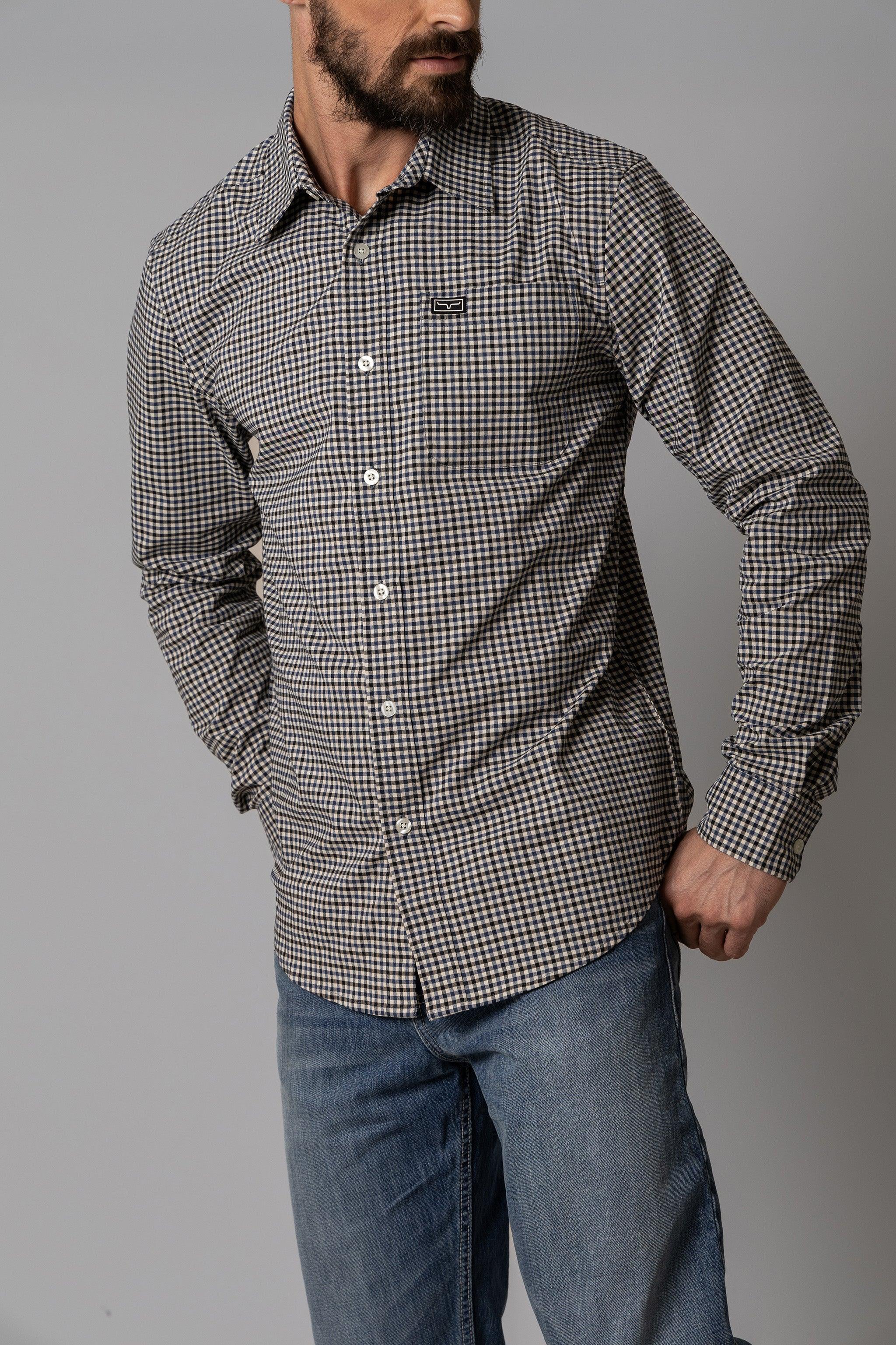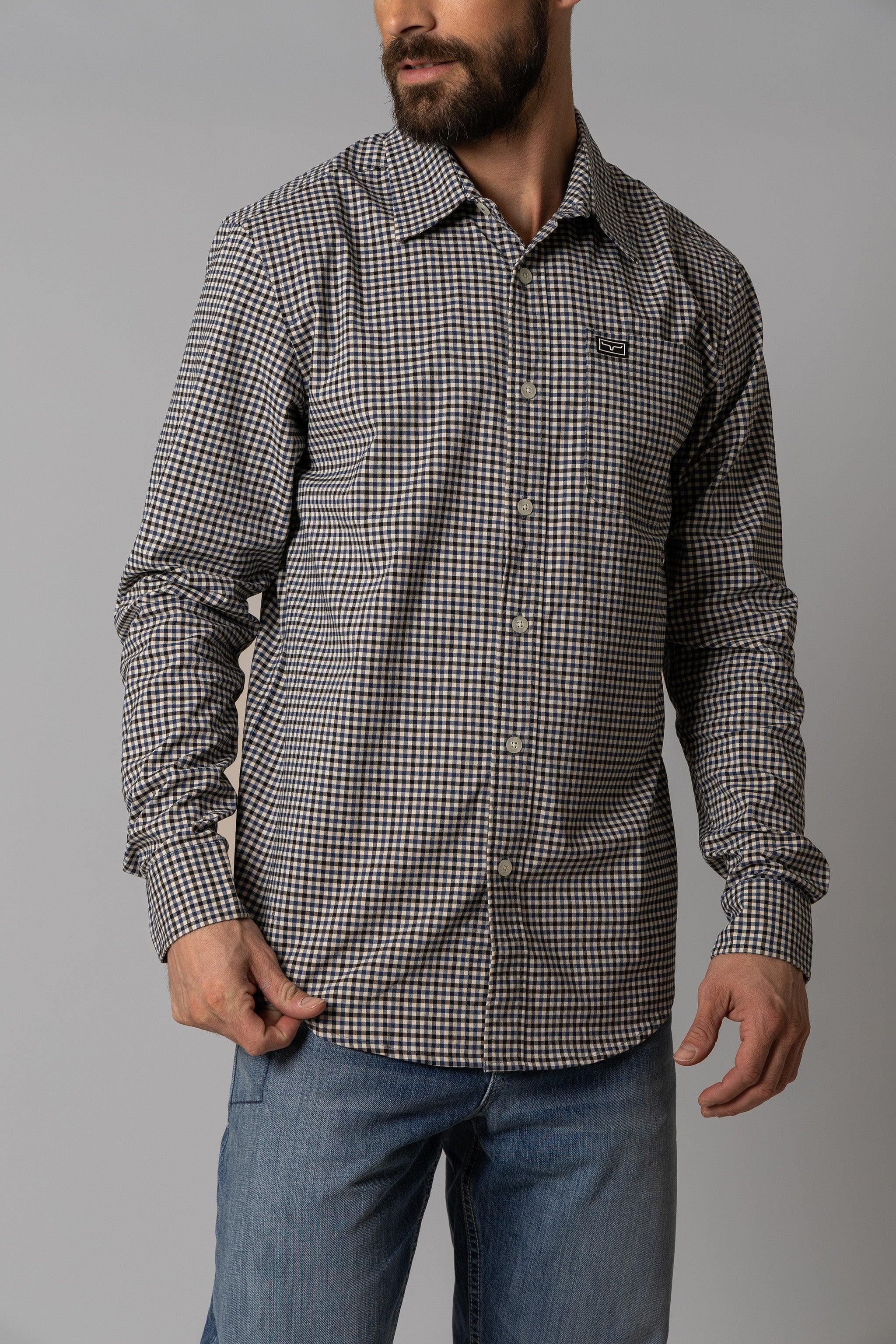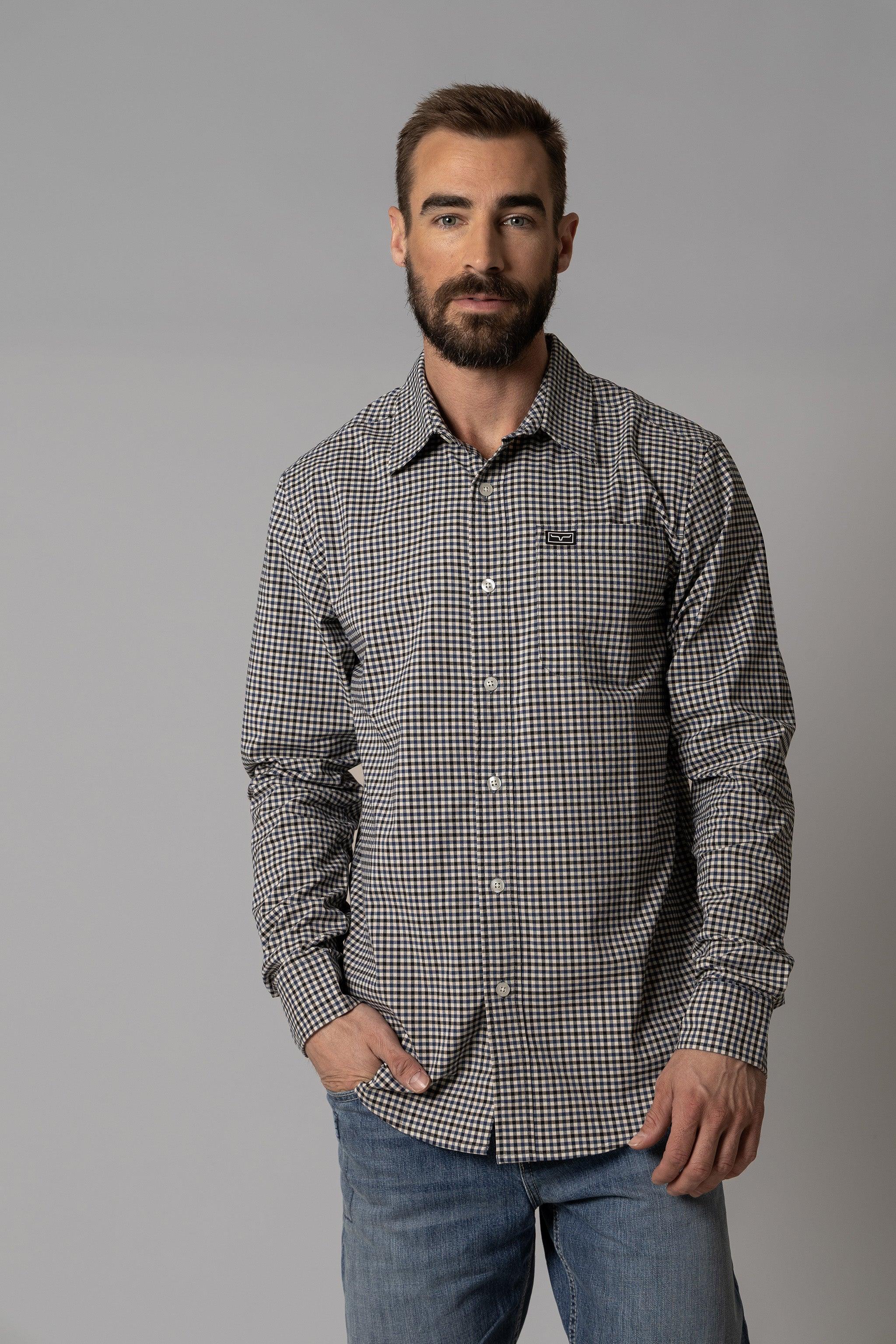 Classic style meets performance in the Welton Dress Shirt. a modern men’s long sleeve shirt built for comfort and versatility. Crafted from a Coolmax cotton blend. this mini-check shirt wicks moisture. offers all-day breathability. and stretches with movement—making it ideal for everything from workdays to weekends. The sleek. tailored fit and subtle tech patch detail bring a modern edge to a timeless look.